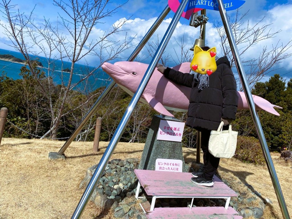 展望広場にはハートロックベル(幸せを運ぶピンクのイルカ)のオブジェがあり